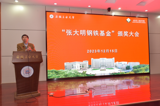 12月15日下午,冶金工程学院在秀山校区振华图书馆大明报告厅举行2023年度“张大明钢铁基金”奖学金、奖教金颁奖仪式。79级炼钢专业校友张大明、校友工作处处长孙晓斌、原校友工作处处长甘亚、学院党政领导、受表彰的教师和学生,以及2022级学生参加了颁奖仪式,仪式由院党委副书记、副院长钱春梅主持。