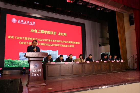 龙红明宣读了《冶金工程学院关于2022-2023学年本专科学生评奖评优情况的通报》、《冶金工程学院关于表彰2022-2023学年优秀班主任的决定》。与会领导为先进集体、先进个人代表颁奖。