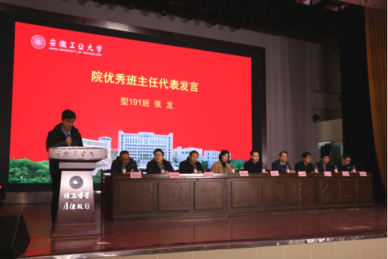 先进集体代表冶204班夏定武同学从选矿启智集思想、烧结球团固信念、高炉炼铁熔智慧、转炉炼钢化创新、铸轧成型结硕果等方面介绍校十佳班级是如何炼成的;先进个人代表型203班卢祉含分享了自己三年的学习成长历程,综合成绩第一、科创竞赛取佳绩、社会实践展担当,用实际行动践行“星光不问赶路人、时光不负有心人”;优秀班主任代表型191班班主任张龙分享了自己担任4届班主任的心得体会,讲述了在班级建设与发展的过程中,与学生共同努力,教学相长的感人故事。