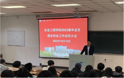 10月10日下午,冶金工程学院在阶教103召开2023届毕业生就业创业工作动员大会。院党委副书记副院长杨建、毕业班辅导员和全体2023届毕业生参加本次会议。