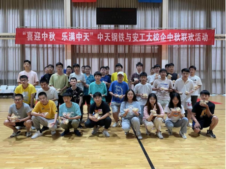 99日上午,喜迎中秋 满中天安徽工业大学与中天钢铁校企中秋联欢活动在中天钢铁体育篮球馆举行。学校2022届签约大学生2023冶金工程专业大四实习生70人参加联欢活动