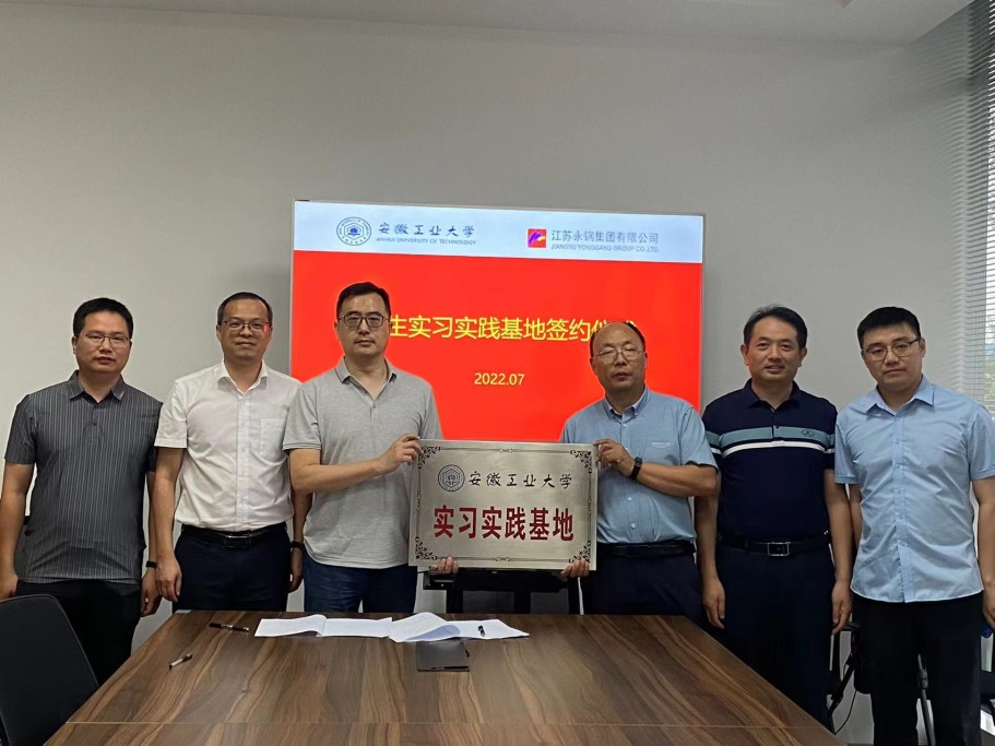 王海川代表学校与王哲部长签订了“安徽工业大学实习实践合作基地建设协议”,并共同为“实习实践基地”揭牌。安徽工业大学与江苏永钢集团有限公司共建实习基地,为校企双方进一步开展多层次、多形式、多领域的常态化合作,实现校企资源的有机结合和优化配置,共同培养新时代高素质、复合型冶金人才具有深远意义。