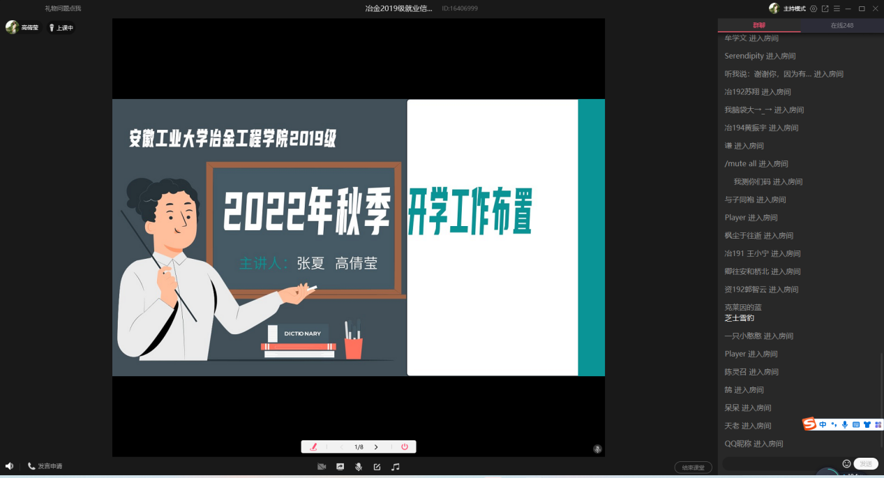 为顺利迎接新学期,做好返校开学工作,8月18日下午,冶金工程学院召开2019级本科生2022年度秋季开学工作布置线上年级会。会议由2019级辅导员张夏主持,全体2019级本科生参加。