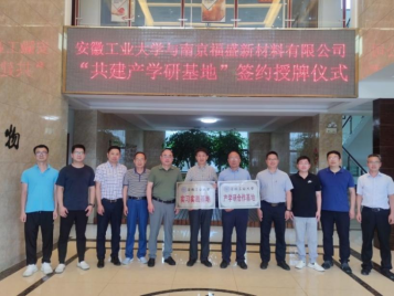 王海川代表学院与福盛新材料总经理严维民签订了“安徽工业大学实习实践合作基地建设协议” 、“安徽工业大学产学研合作基地建设协议”,并共同为“实习实践基地”、“产学研合作基地”揭牌。在企业负责人的陪同下,一行人参观了企业的研发中心以及生产车间。