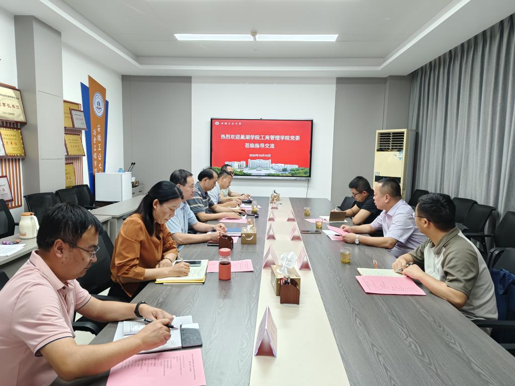 10月10日下午,巢湖学院工商管理学院党委书记管超一行来我院开展党建“双创”工作调研交流。学院党委书记路壮志、院长龙红明、党委副书记朱艳飞和党支部书记代表参加了交流会。