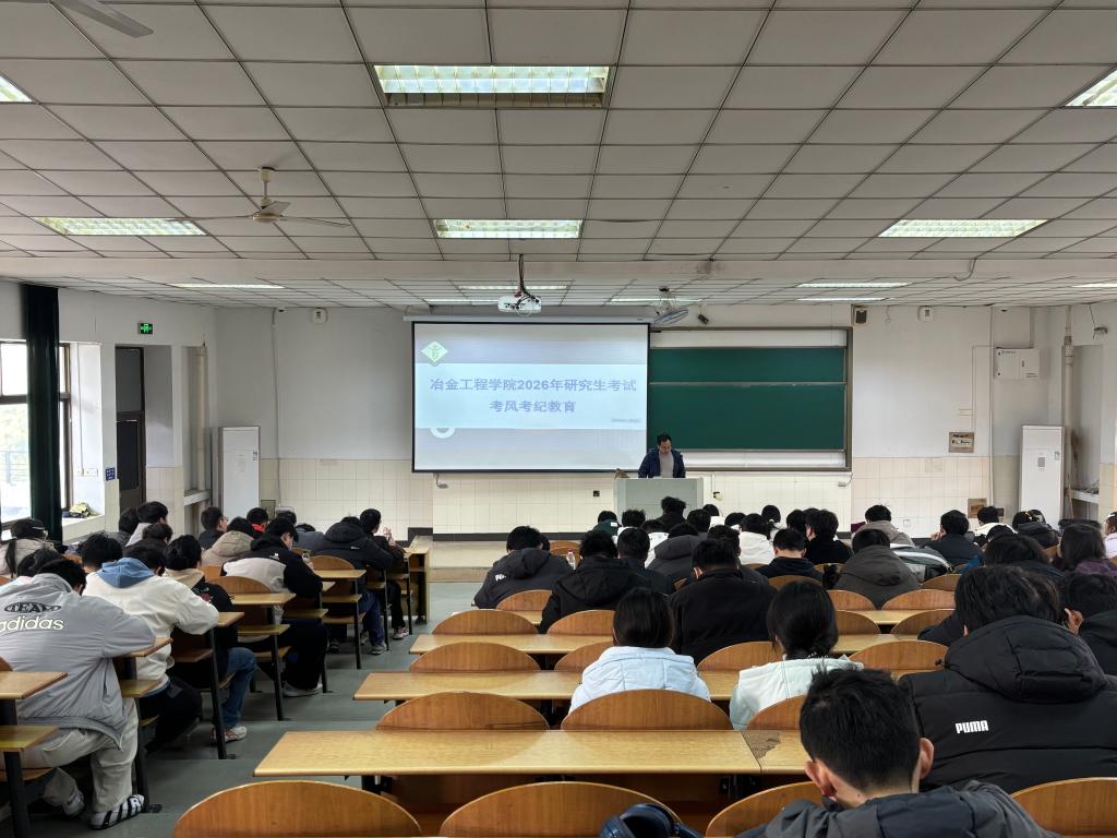 12月16日,冶金工程学院在东阶202教室召开2026年硕士研究生入学考试诚信教育暨考前动员大会。学院2026届全体考研学生参加本次会议,会议由2022级辅导员李亚飞主持。