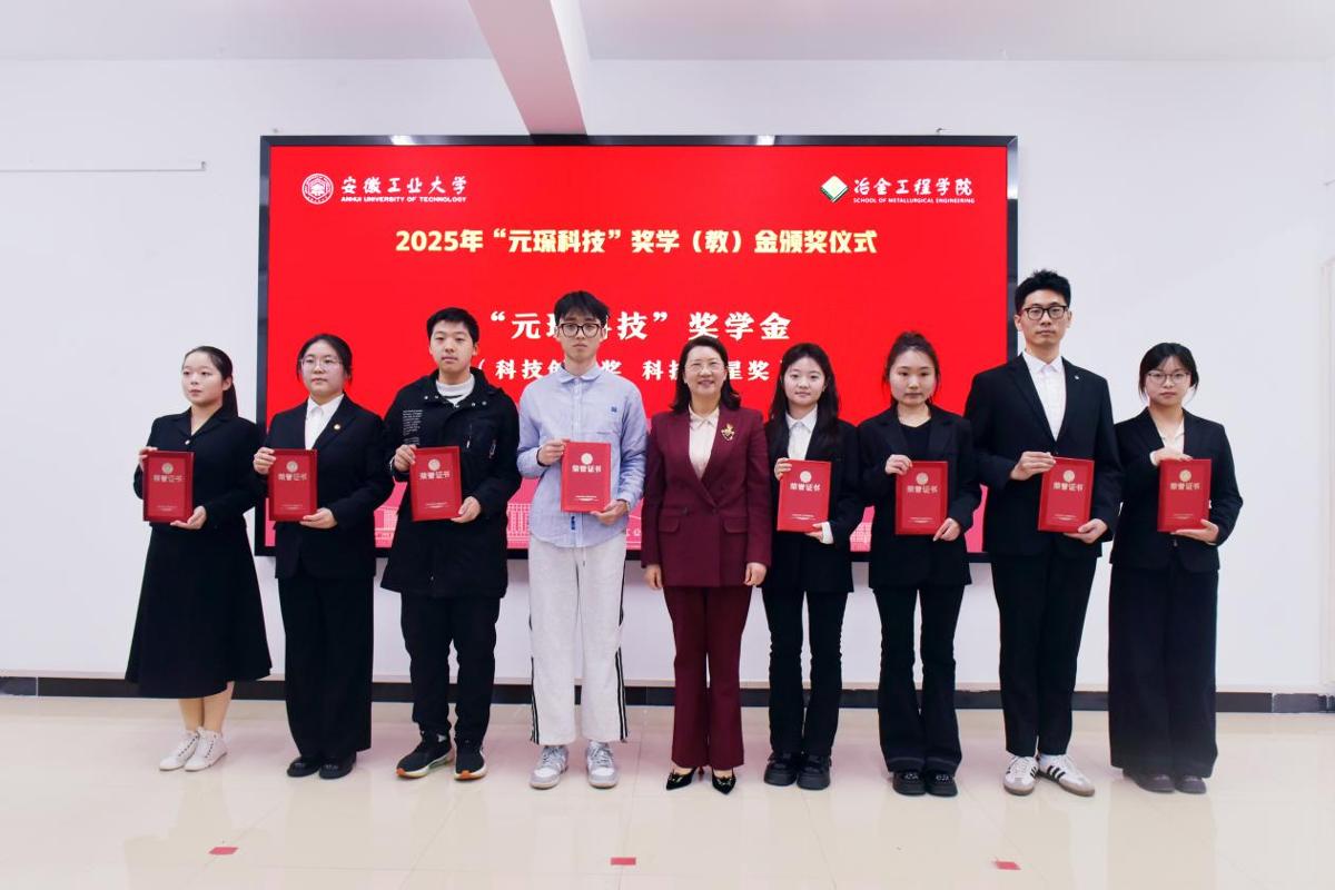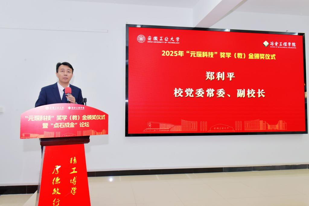 12月26日下午,2025年“元琛科技”奖学(教)金颁奖仪式在秀山校区举行。校党委常委、副校长郑利平,安徽元琛环保科技股份有限公司党委书记、创始人兼CEO、我校就业创业领航导师梁燕出席,元琛科技相关负责人、冶金工程学院领导班子成员、师生代表100余人参加活动。