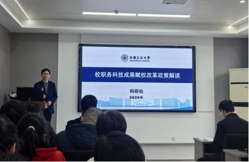 会上,吴宣够立足国家关于科技成果转化的最新政策导向,从国家赋权改革背景、赋权转化模式以及我校职务科技成果赋权改革流程探索等方面,深入剖析了从传统科技成果转化到“赋权+转让+约定收益”模式的演变逻辑,详细阐释了“赋权+转让+约定收益”改革模式的核心机制与基本做法,全面解读了我校职务科技成果赋权改革的具体政策支撑与实施流程。