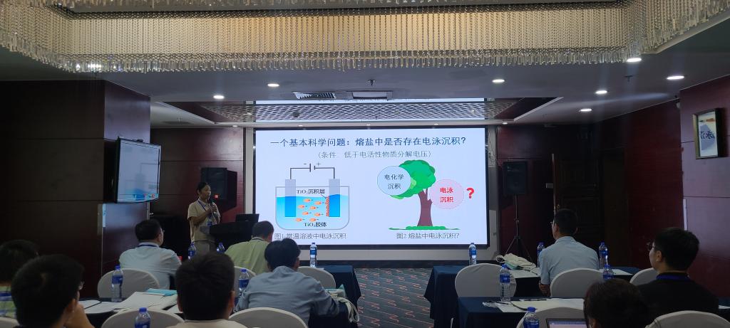 冶金工程学院有色金属冶金系教师肖赛君参会,并在分会场作题为“涂层的熔盐电泳沉积制备与生长机理”的主旨报告。重点介绍了课题组在熔盐电泳沉积研究方向上的最新研究进展,包括新发现的熔盐中碳化物等胶体颗粒电泳沉积现象及其致密涂层制备、涂层生长过程中存在的非经典结晶现象等。与会专家学者对课题组通过学科交叉来拓宽传统熔盐物理化学研究视野、形成新学科生长点的做法表示了肯定,并就熔盐电泳沉积研究方向的未来发展提出了宝贵的建设性意见。