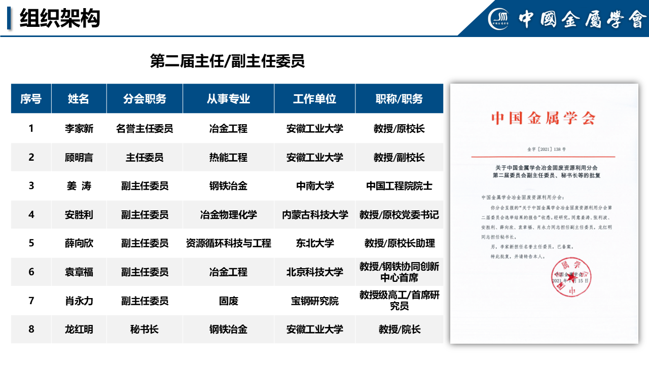 中国金属学会冶金固废资源利用分会是全国性的学术团体,由冶金固废资源利用领域的企事业单位及有关组织、科技人员和相关社会人士组成,挂靠单位为安徽工业大学。冶金固废资源利用分会旨在为国内外同行提供学术与技术合作交流平台,促进冶金固废处理和生态材料领域的科学研究、技术发展和科技成果的转化与应用,促进全国高等院校、科研院所和企业的全面合作和共同发展。
